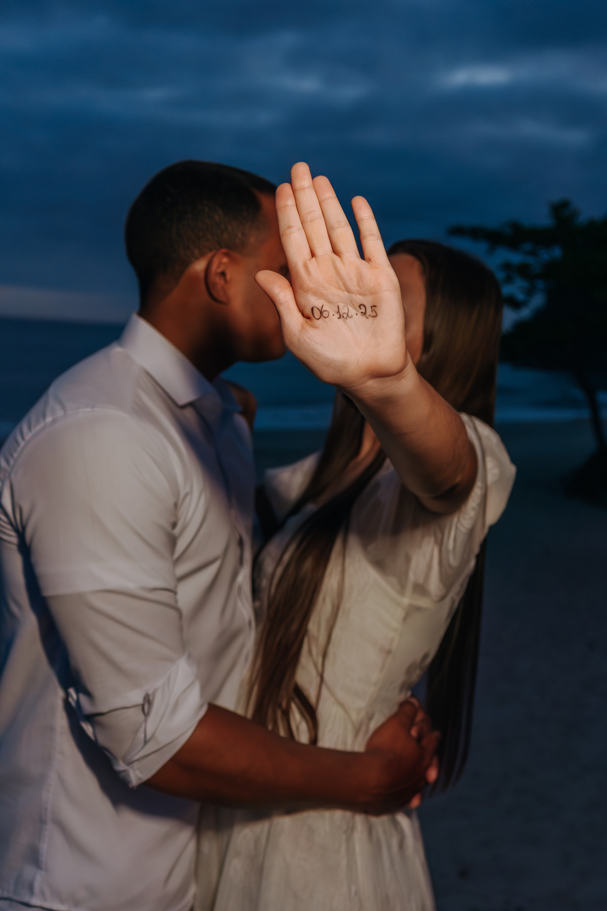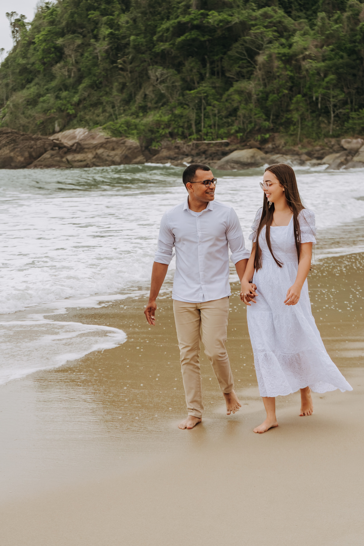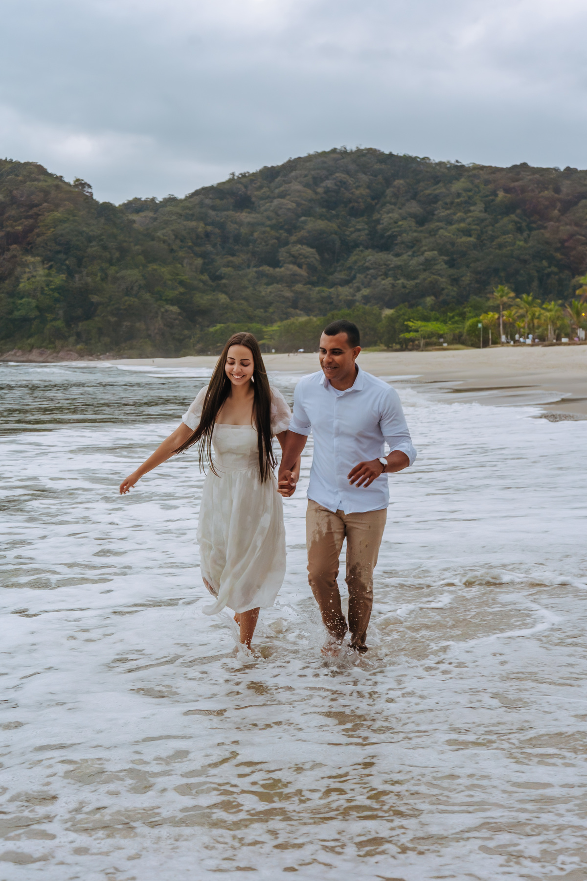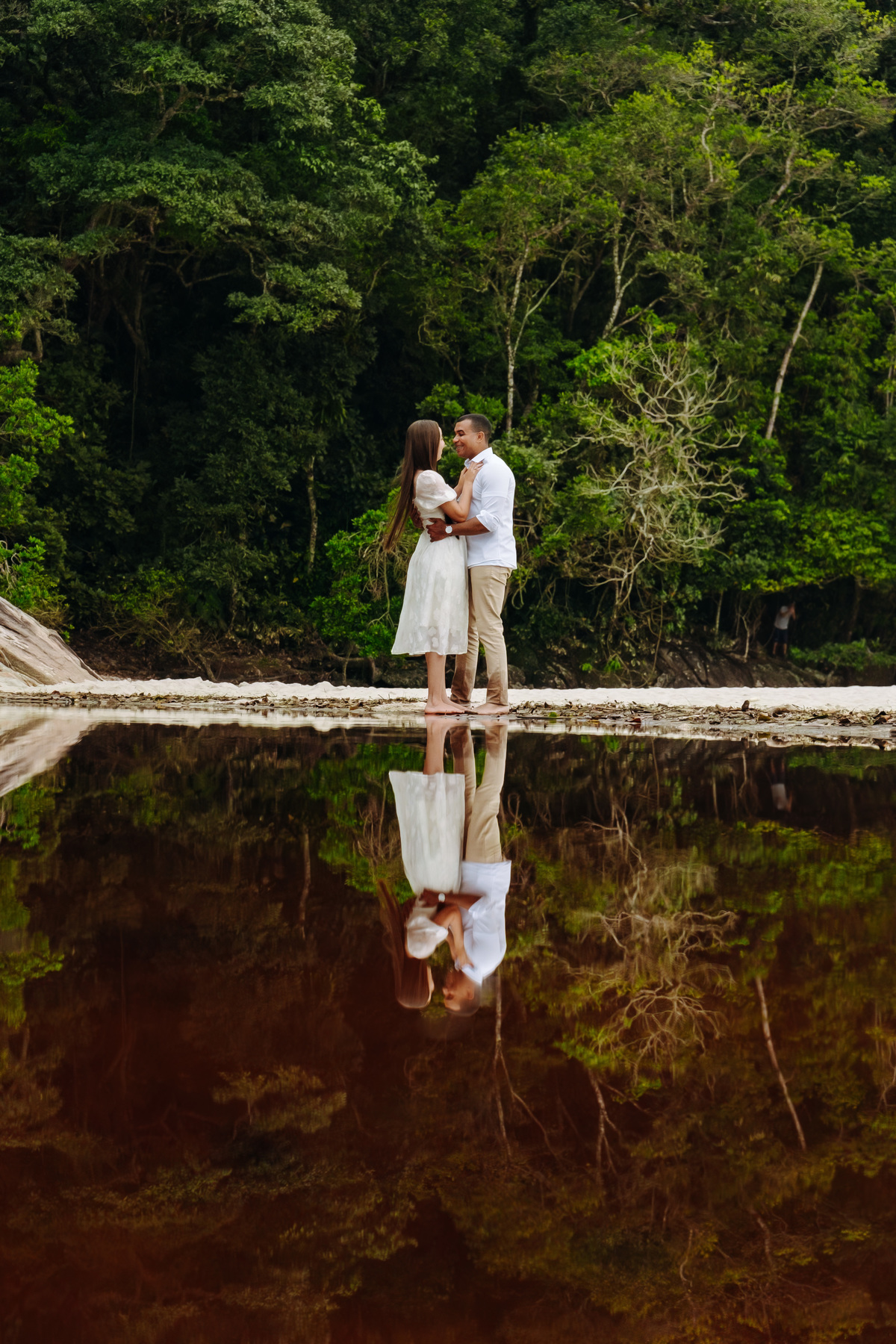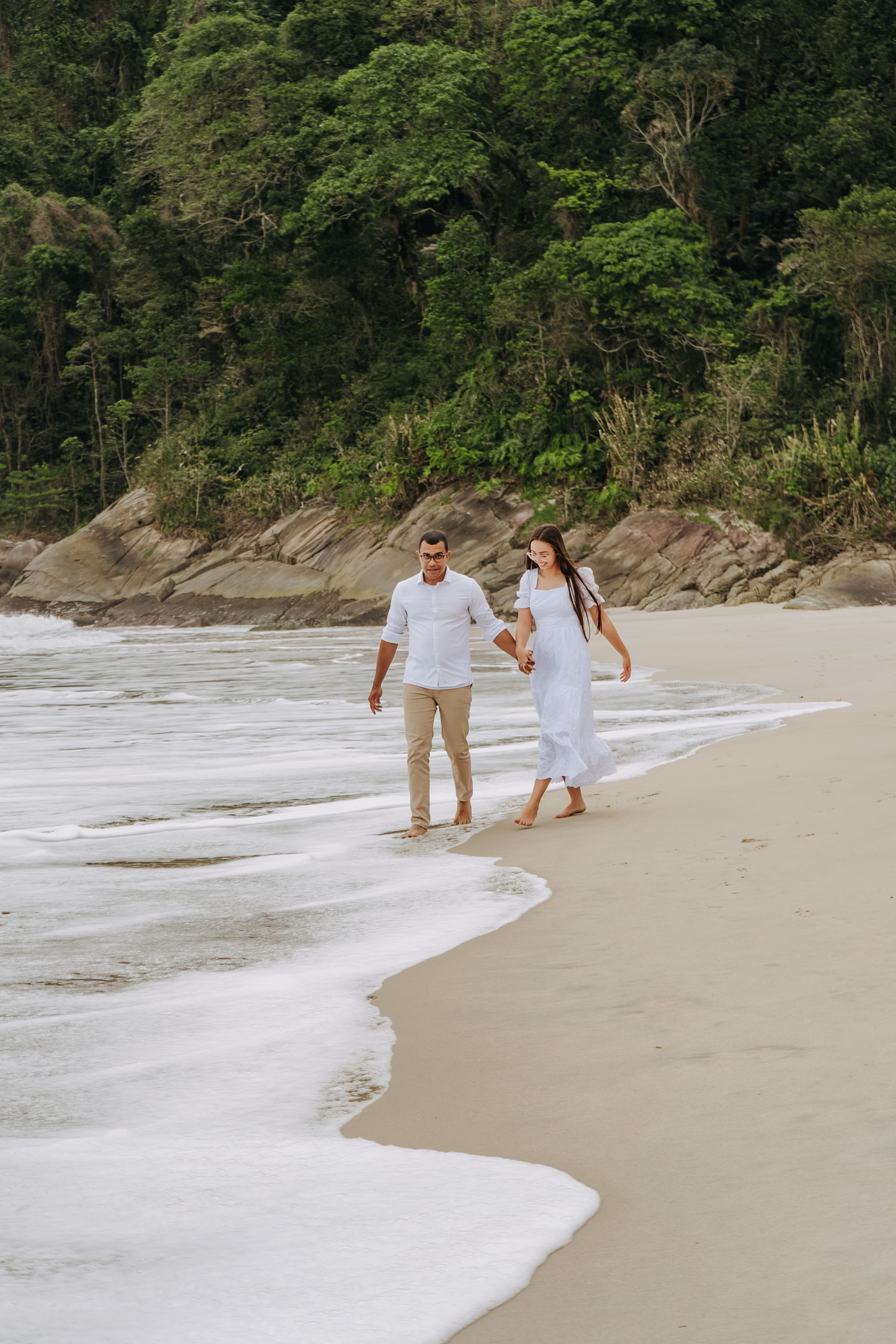 Na praia da Jureia, onde o mar encontra a areia em um ritmo calmo e constante, Iohanna e Natan viveram um ensaio cheio de leveza. O céu nublado trouxe uma luz suave, quase poética, criando aquela atmosfera serena que combina com momentos verdadeiros.